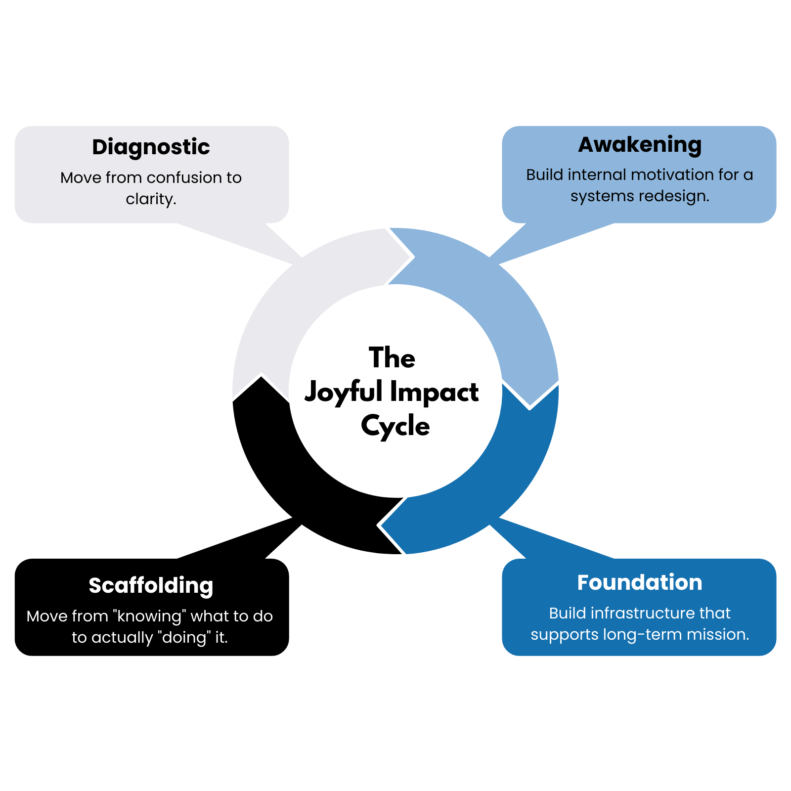 Unlike traditional HR consulting that creates dependency, the Joyful Impact Cycle is rooted in Capacity Building: I do it for you today, so that you can build the internal systems and strength to eventually do it yourself.